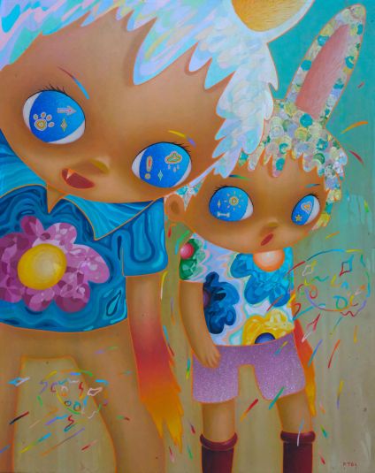 At first glance, Ryo's paintings are charmingly whimsical; Pop-surrealist artworks skillfully executed in an illustrative style reminiscent of the world of anime. The visual expression of his artworks conceals that the artist is addressing subjects that, in contrast, are very contemporary.